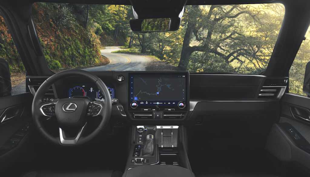 Inside all GX 550s, expect a completely new cabin. The redesigned, horizontal instrument panel now sits lower for improved visibility and a better view of the optional HUD. Lexus retained the hard switches and dials for the important stuff, and moved the off-road control closer to the gear shifter.