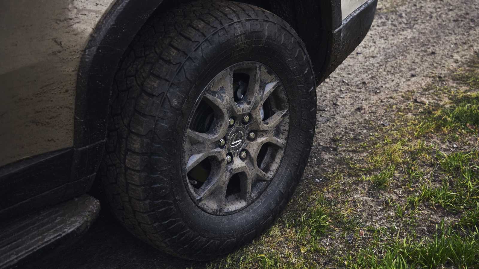 The thick, squared-off shape of the bonnet projects toughness, but the bonnet’s low-set centre section ensures the driver has a good view of front corners, so they can manoeuvre the vehicle with confidence. With a shorter front overhang, the GX has a greater approach angle for tackling steeper slopes.