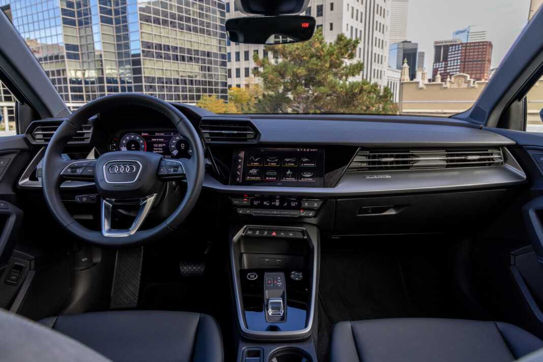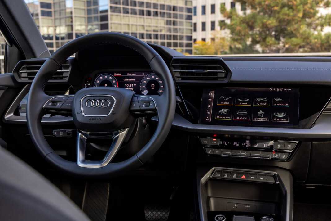 Основное внимание создателей Audi A3 2021 сосредоточено на водительском месте. Вокруг него строится вся архитектура салона: виртуальная панель приборов Audi virtual cockpit с диагональю 10,25-12,3 дюйма, развернутый к водителю сенсорный монитор мультимедиасистемы MMI Navigation plus с разрешением 1540 х 720 точек, удобная панель управления трехзонным климат-контролем — аналоговая, правда, но интерьер это не портит