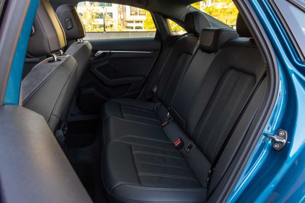 Задний диван с подлокотником номинально рассчитан на трех пассажиров, но комфортно разместятся на нем лишь двое: плоское днище привело к появлению массивного центрального тоннеля. Зато остальным седокам обеспечены отличные условия — подогрев передних кресел с массажем, пакеты кожаной и тканевой обивки, атмосферная подсветка салона, панорамная крыша с электролюком и обилие места для ног. Даже на полной скорости разговаривать в салоне Audi A3 2021 можно вполголоса — посторонние шумы отсекают аэродинамика корпуса и добротная шумоизоляция.