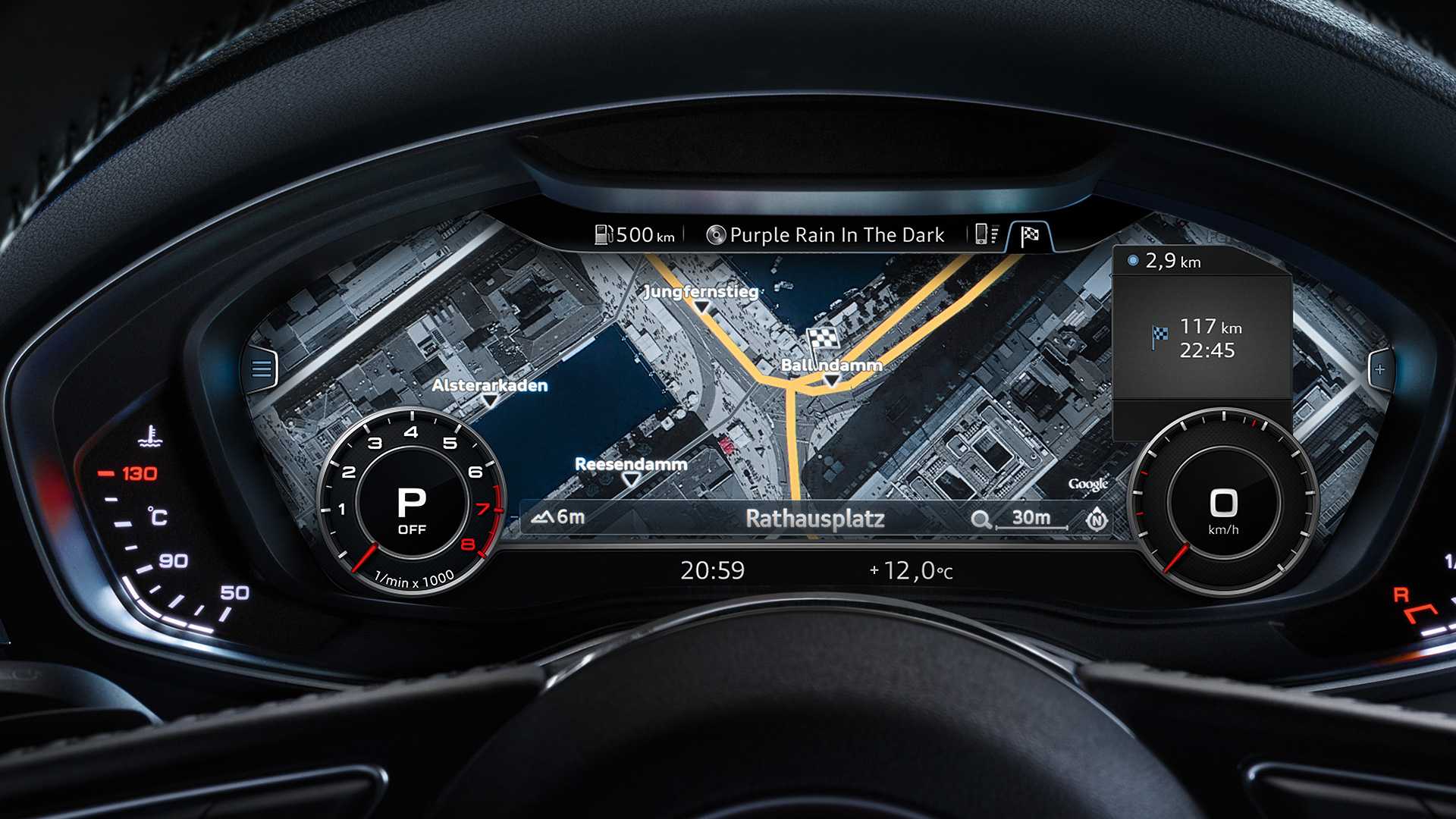 На этот же экран выводятся параметры управления автомобилем, картинка с камер заднего вида, видеофайлы и прочая информация. За звуковое сопровождение отвечают от восьми до десяти динамиков Audi sound system, а требовательным аудиофилам наверняка понравится звучание премиальной акустики Bang & Olufsen с 19 динамиками общей мощностью 755 Вт.