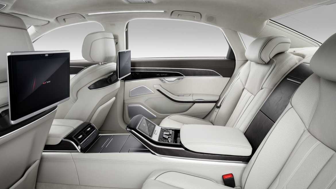 Удлинение колесной базы модели на 6 миллиметров позволило сделать пребывание пассажиров заднего ряда в салоне еще более комфортным. И хотя по своей длине новая Ауди А8 претендует втиснуться в ряды лимузинов, такого увеличения размеров кузова явно недостаточно, и можно сказать, что автомобиль практически остался при своих прежних размерах. Также стоит отметить, что при всех своих стараниях компания-производитель создала достаточно длинный и тяжелый автомобиль, вес которого все же чувствуется несмотря на все попытки создателей сгладить этот момент благодаря внедрению различных нововведений.