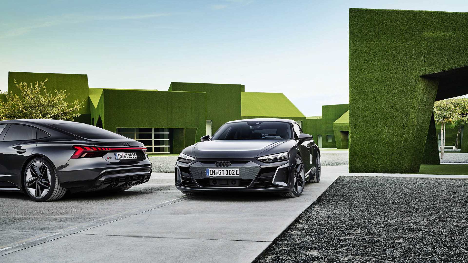 Новый e-tron GT похож сразу на два автомобиля концерна VW: Audi A7 и Porsche Taycan. На первый из-за того, что все «Ауди» похожи друг на друга, а со вторым e-tron GT действительно родственен. Все три автомобиля объединяют очень близкие параметры: у e-tron GT это 4989 × 1964 × 1414 мм, а другие модели не большее чем на 30 мм расходятся с ним. Однако колёсная база идентична по размерам лишь у e-Tron GT и Porsche: 2900 мм, у A7 она слегка больше — 2926 мм. Такое объединение очень рационально и позволяет концерну экономить часть денег.