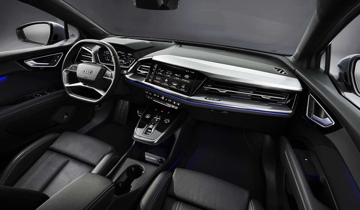 Новая модель Audi Q4 E-Tron 2021 модельного года будет предлагаться с двумя вариантами отделки – с искусственной или натуральной кожей, которая станет сочетаться с аналогом замши, почти наполовину сделанным из переработанных материалов. В роли декора – алюминий и дерево.