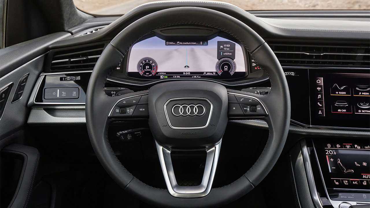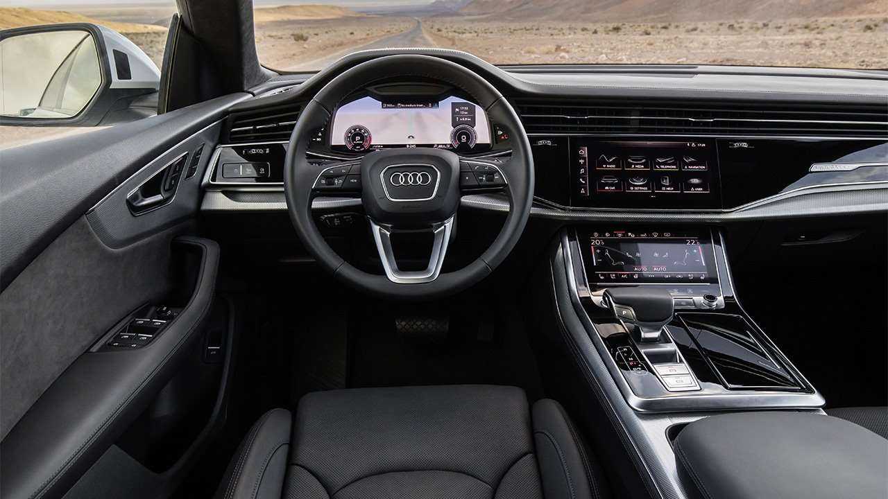В интерьере кроссовера нашли свое применение самые последние новомодные тенденции Audi. Число традиционных кнопок сведено к минимуму — для управления функциями автомобиля предусмотрены большие тачскрины с высоким разрешением (центральный дисплей 10.1 дюйма, 8.6-дюймовый экран климат-системы и 12.3-дюймовая приборная панель). На старте продаж Audi Q8 получила 3-литровый «дизель» V6, дополняющийся комбинированным стартером-генератором с ременным приводом и литий-ионной батареей. Электротяга вспомогательной силовой установки позволяет кроссоверу более эффективно стартовать с места и экономить топливо. Полноприводная система quattro по умолчанию раcпределяет тяговый момент в соотношении 40 на 60. В базовом исполнении Audi Q8 имеет управляемые электроникой амортизаторы, за дополнительную плату автомобилю доступна пневматическая подвеска и полноуправляемое шасси.
