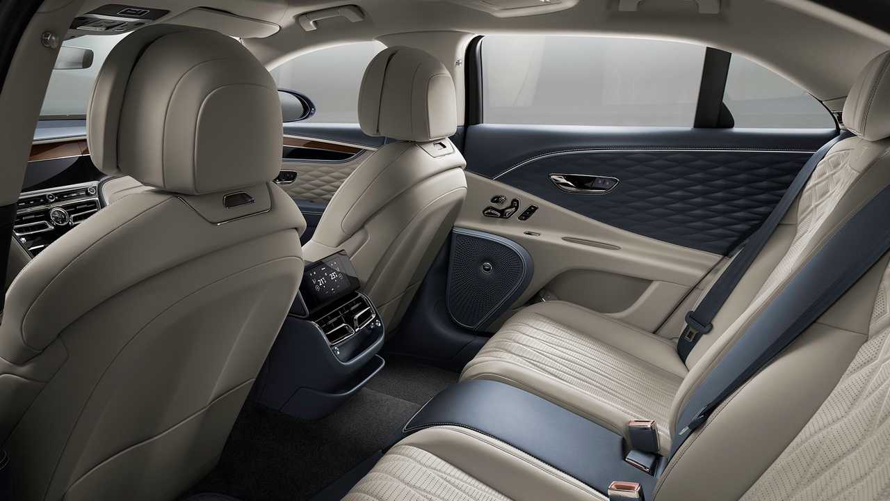 Как и в любом Flying Spur, задние сиденья — лучшие в салоне. Помимо большого пространства для головы и ног, те, кто находится сзади, могут наслаждаться массажными сиденьями и выбирать свои собственные конфигурации с помощью устройства в стиле смартфона, которое аккуратно расположилось на центральной консоли, а также с него можно настраивать температуру, окружающее освещение и управлять музыкой. Конечно, задние сиденья откидываются, а мягкая подушка поддерживает шею и голову, чтобы можно было бы расслабиться.