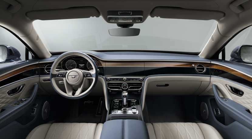 Салон Bentley Flying Spur вышел на новый уровень в плане качества отделочных материалов и количества инноваций. Впервые на дверных панелях седана используются трехмерные кожаные вставки с ромбовидными секциями. На выбор предлагается 15 цветовых схем обивки интерьера плюс несколько версий деревянного шпона, среди которых новый вариант Crown Cut Walnut, изготавливаемый по особой технологии.