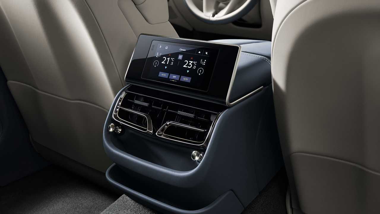 - Съемный сенсорный пульт для задних пассажиров, предоставляющий среди прочего доступ (в том числе, удаленный) к настройкам климат-контроля и массажной функции сидений второго ряда.