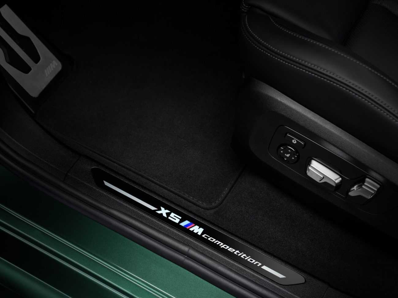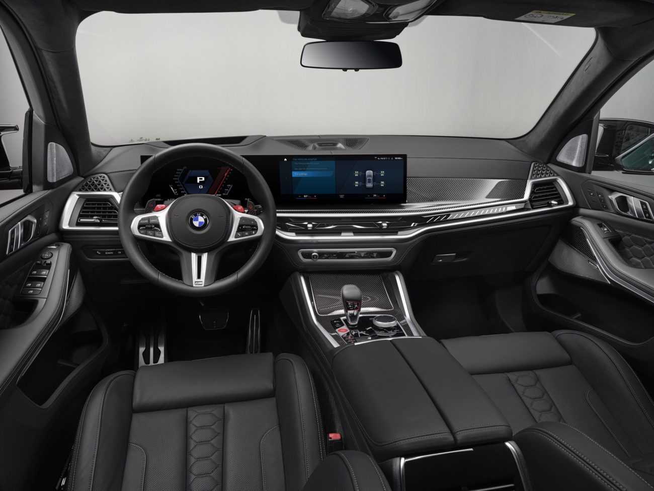 Внутри он наиболее значительно обновлён. Большая часть дизайна кабины осталась прежней, но в ней есть несколько новых дизайнерских штрихов, таких как тумблер переключения передач, который заменяет старую ручку переключения передач, обновлённый изогнутый экран и элементы отделки. Новый экран представляет собой такой же двойной изогнутый экран, такой же как и у любого другой нового BMW, и работает с iDrive 8. Интерьер X5 M был великолепен и до обновления, поэтому сильно не изменился.
