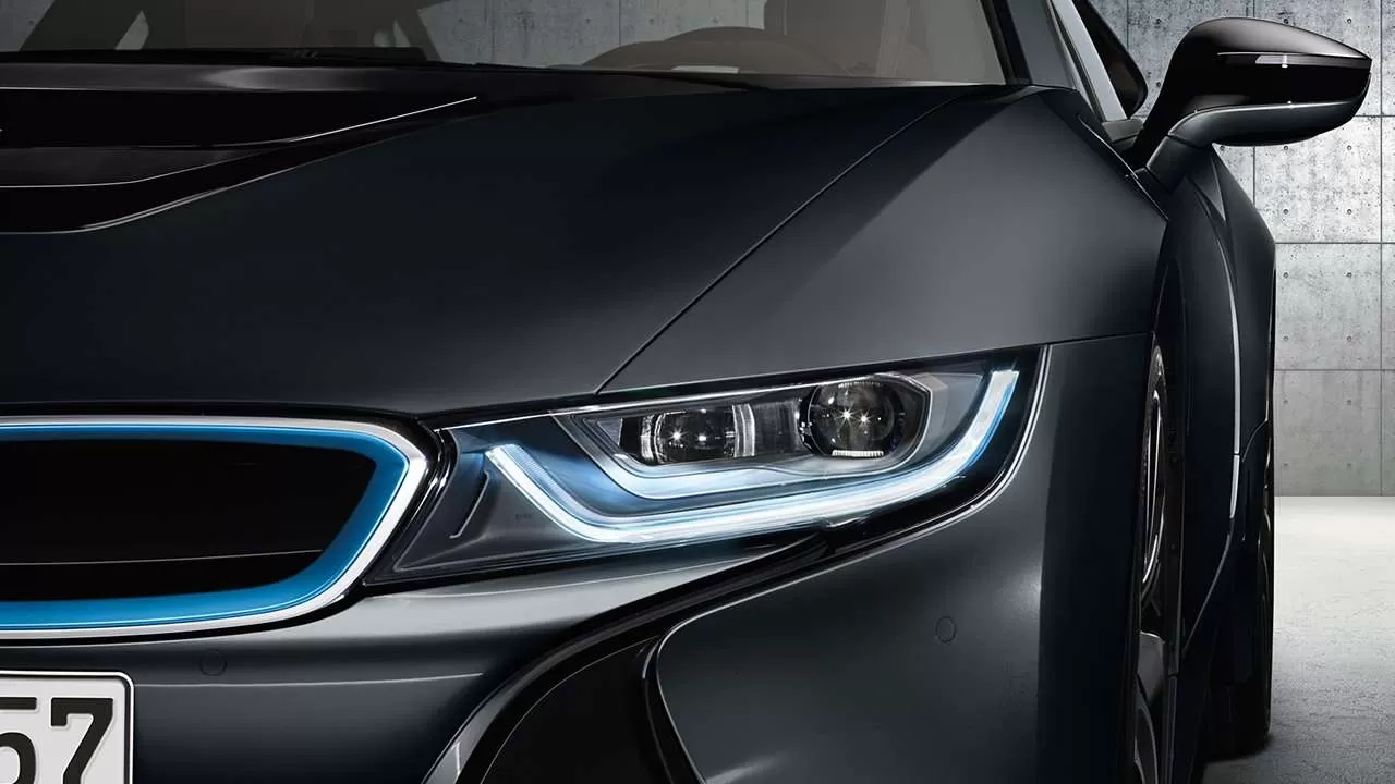 Как отдельная фишка для новинки – BMW i8 Hybrid 2014 характеристики сообщают, что разработчики предлагают инновационную лазерную оптику, у которой интенсивность свечения превышает порядка в 1.8 раза, свечение светодиодной.
