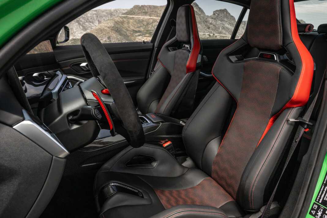 В то же время, интерьер новинки отличается от предыдущих версий тройки BMW более современным и высокотехнологичным дизайном. Абсолютно все элементы интерьера выполнены из качественных материалов, что обеспечивает максимальный комфорт во время движения. Кожаные сиденья и спортивный многофункциональный руль влияют на то, что водитель BMW M3 2023 не так сильно устает во время длительных поездок. Хотя стоит признать, что данный автомобиль никак не рассчитан на круглосуточное вождение из-за своей чрезвычайно жесткой подвески.
