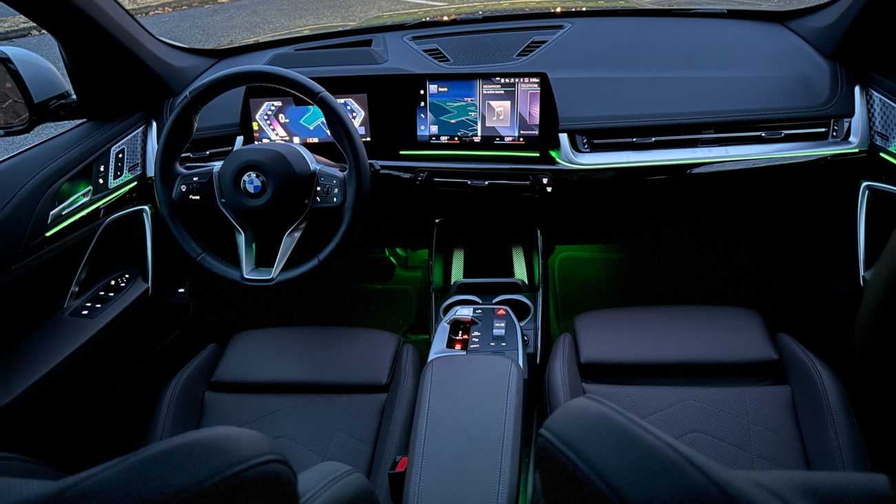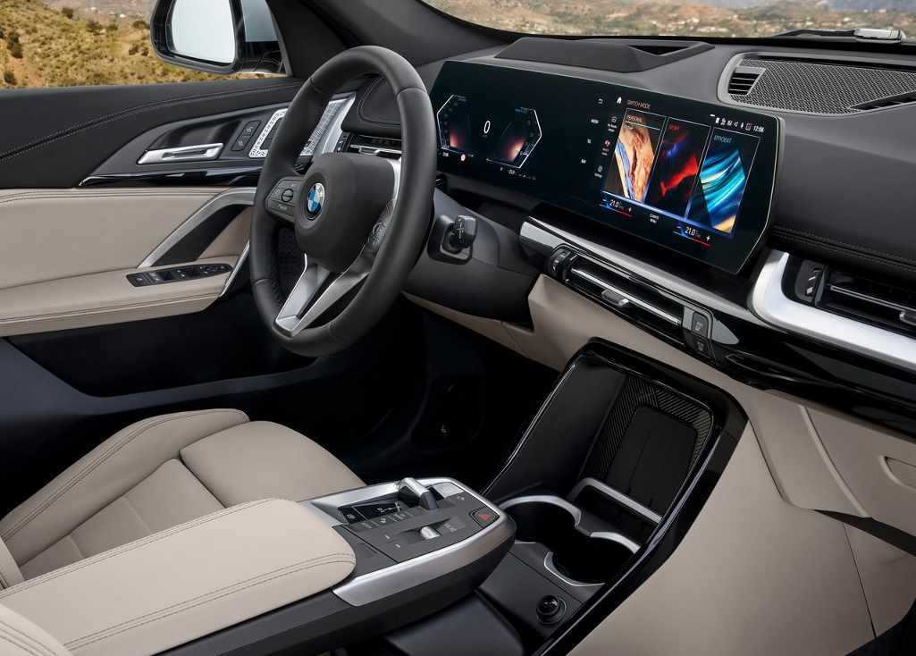 При переходе на операционную систему BMW iDrive 8 X1 отказывается от ручки управления iDrive старой модели на центральной консоли в пользу полностью сенсорного интерфейса и голосового управления. Фактически, X1 теряет почти все свои физические кнопки на приборной панели — там, где предыдущий X1 предоставлял пользователям ручки и кнопки, скажем, для предустановок радио, управления системой кондиционирования и т.п., В этой версии 2023 года единственными очевидными кнопками являются кнопки на рулевом колесе, дверных панелях (для управления окнами и замками), а также элементы управления освещением слева от рулевого колеса. Плавающая консольная панель перед центральным подлокотником обеспечивает удобное расположение кнопки зажигания, джойстика переключения передач, кнопок стояночного тормоза и аварийной сигнализации, а также большого колеса для регулировки громкости. Все остальное обрабатывается на 10,25-дюймовом цифровом сенсорном экране.