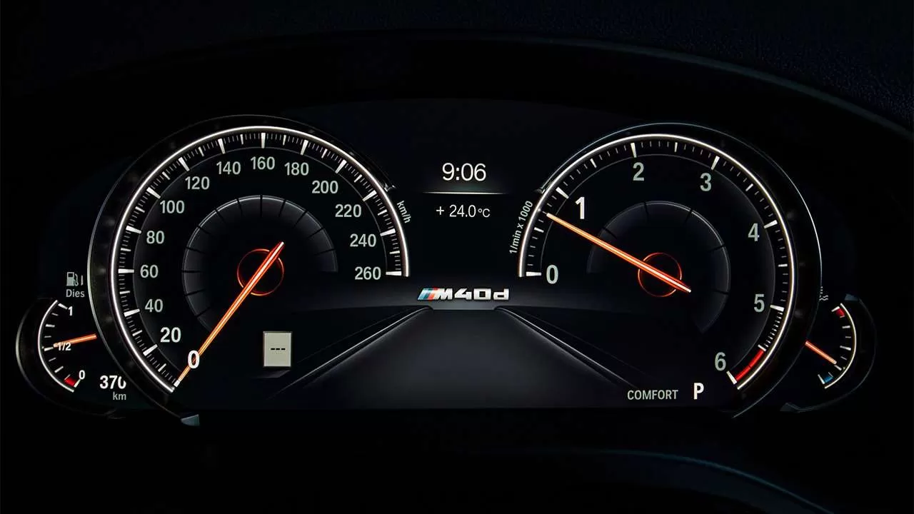 Приборная панель БМВ Х4 опционально из аналоговых датчиков меняется на 12,3-дюймовый дисплей с технологией Black Panel. Приборка имитирует аналоговые датчики, отображает информацию от датчиков распознавания знаков. Также опционально ставится проекционный дисплей, чтобы концентрироваться на дороге.