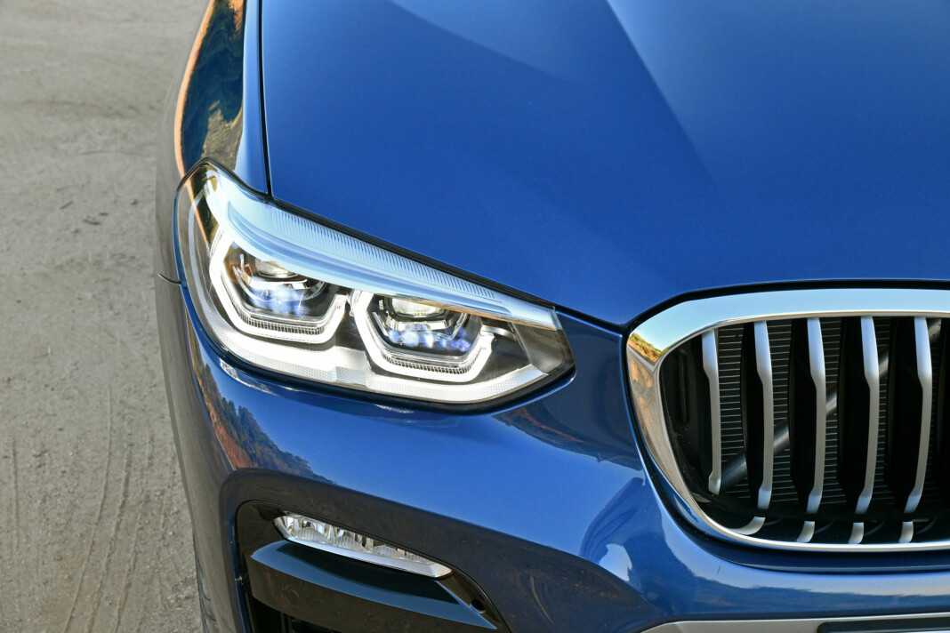 Передняя часть автомобиля имеет общие черты с X3 G01. Спереди установлены светодиодные фары в виде фирменного прищура, рельефный капот, стандартные радиаторные решётки с ноздрями, трёхсекционный бампер с широким воздухозаборником. По бокам переднего бампера установлены ходовые огни с противотуманками, окаймлённые хромированными вставками.