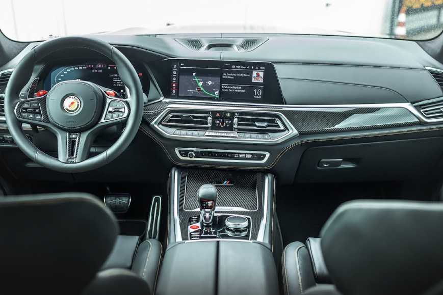 Помимо повышения производительности, тюнер также изменил внешний вид X5 M. Углеродное волокно было щедро применено по всему автомобилю, а капот, передний спойлер, задний диффузор и боковые юбки были обработаны с использованием легкого материала. Аккуратный штрих — задний спойлер, состоящий из двух частей, и карбоновые корпуса зеркал заднего вида. В целом, это более скромно, чем можно было бы ожидать от тюнера послепродажного обслуживания, хотя мы могли бы обойтись без золотых наклеек на лобовом стекле.