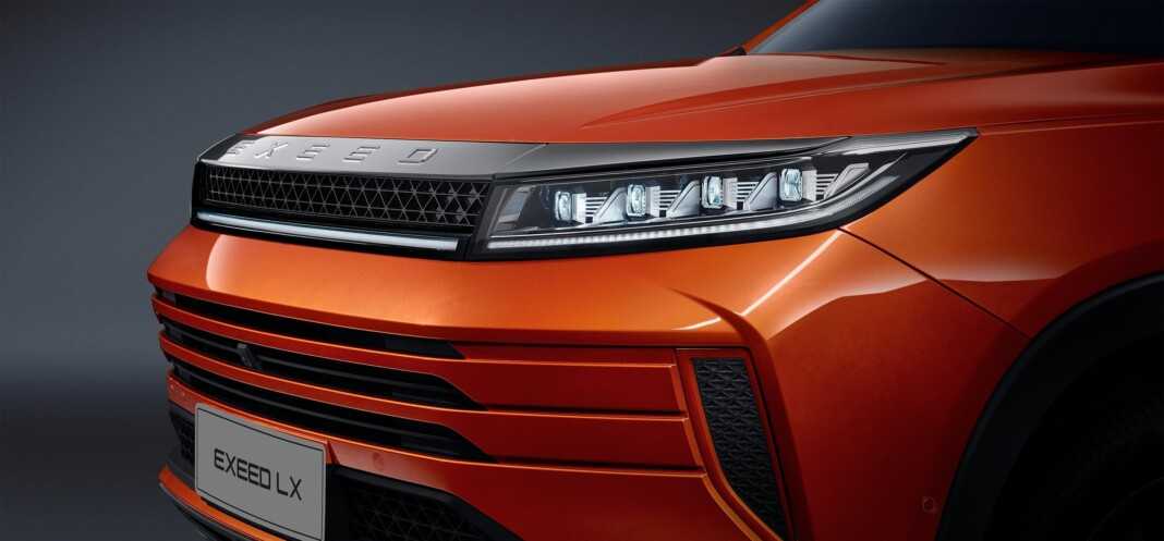 Новый полноприводный Exeed TXL может похвастаться более широкой радиаторной решеткой, вертикально ориентированными блоками фар, измененным дизайном переднего бампера, раздвоенной системой выхлопных патрубков и тонкой дугой, соединяющей задние фонари.