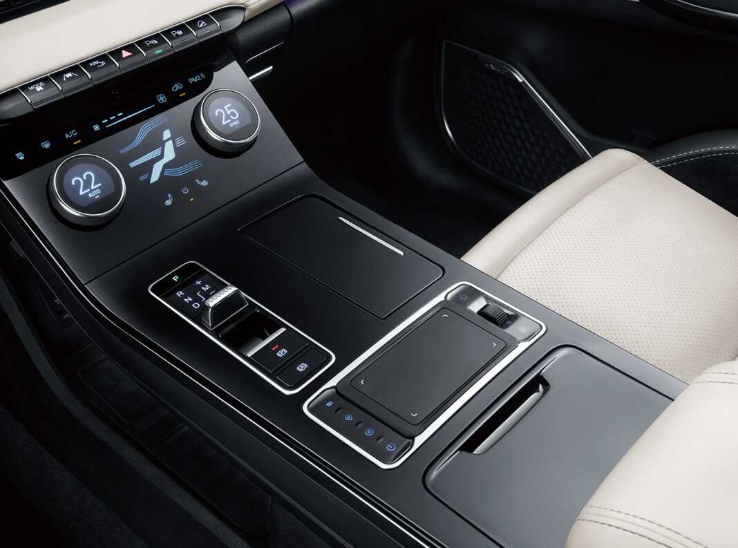 На центральном тоннеле разместился удобный тачпад в виде двух “крутилок” управления контролем климата. Кроме этого, базовая сборка отличается от предыдущей версии тем, что вместо рычажка селектора в салоне этого китайца появился крупный переключатель режимов трансмиссии. В то время как флагманская модель TXL 2023 обрела полноценный рычаг селектора.