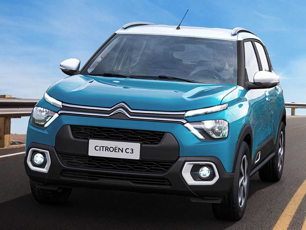 Индийская версия отличается от европейского аналога меньшей, дающей существенные налоговые преференции, длиной кузова. На фото анфас Citroen C3 образца предстоящего, 2022 года отсутствуют характерные для кроссоверов детали спортивно-агрессивного стиля. Новый кузов в переднем ракурсе демонстрирует: