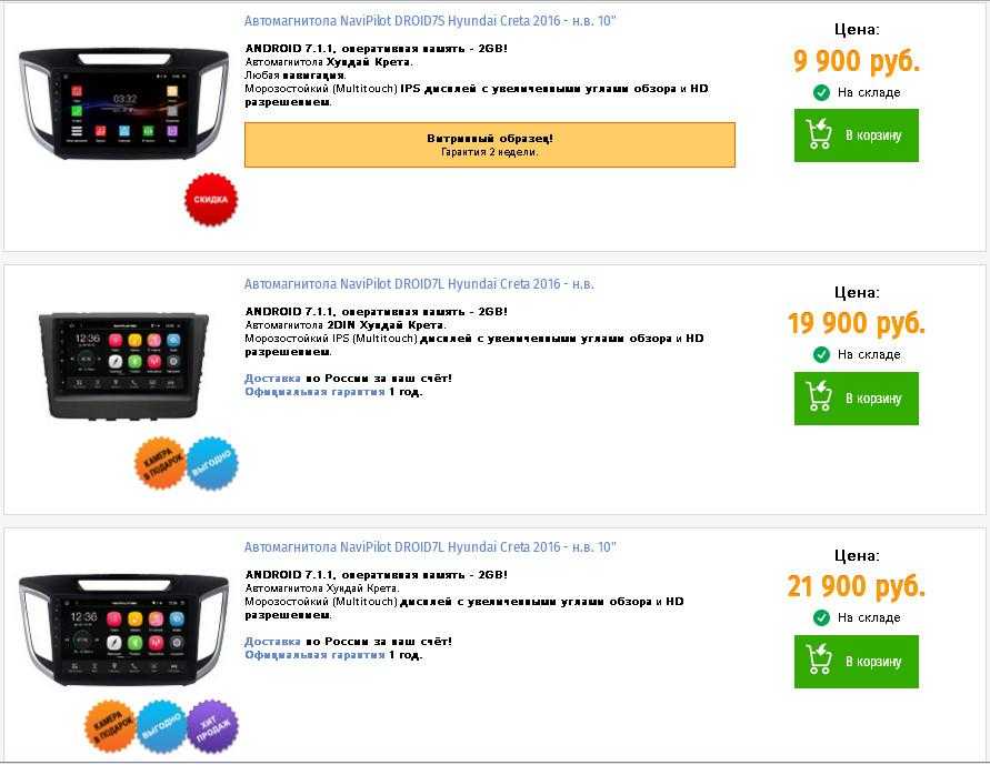 Hyundai Creta выпускается довольно давно (в Россию его начали поставлять еще в 2016 году), поэтому на рынке представлен широкий выбор дополнительного оборудования, в том числе и автомагнитол с навигацией для этого кроссовера.
