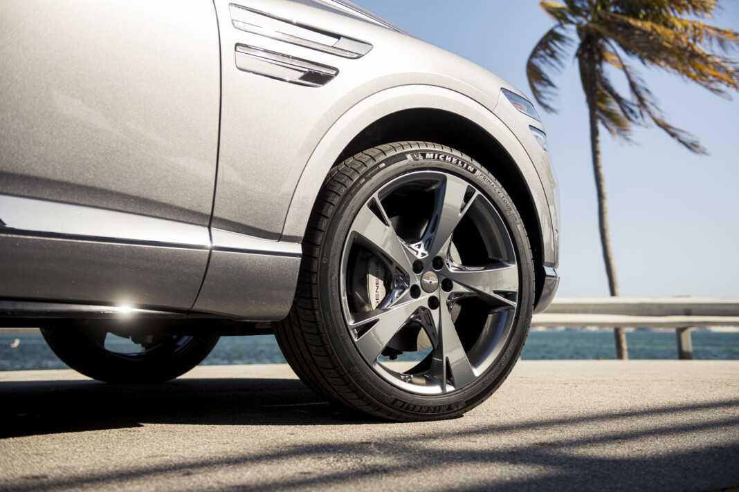 Genesis GV80 2021 года базируется на заднеприводной платформе, предусматривающей продольное расположение мотора. В основе корейской модели лежат 2 независимые многорычажные подвески. Длина кроссовера составляет 4 945 мм при колесной базе в 2 955 мм. Ширина кроссовера достигает 1 975 мм, высота — 1 715 мм. По кругу у него размещены дисковые тормозные механизмы и стабилизаторы поперечной устойчивости.