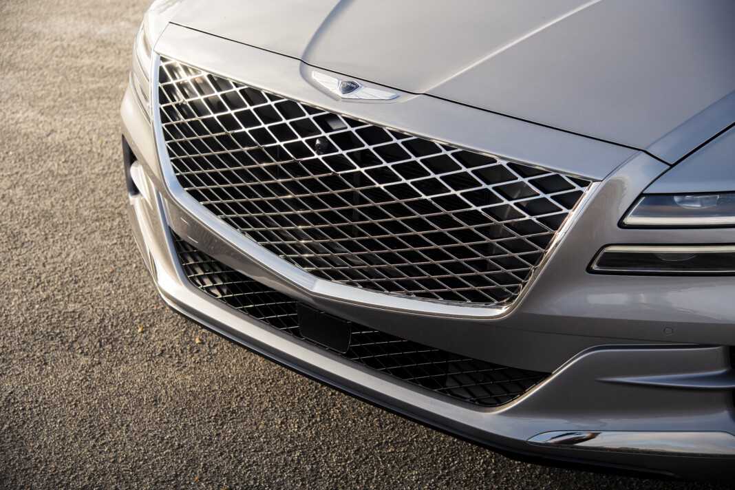 Genesis GV80, как и его конкуренты, выделяется массивным кузовом с ровными гранями и покатым капотом. Отличительной чертой корейской модели считается огромная радиаторная решетка в форме щита, которую пересекают тонкие металлические планки. Передняя и задняя оптика у кроссовера выполнена в виде двух горизонтальных светодиодных лент, расположенных друг над другом. Передний бампер содержит небольшой воздухозаборник, который из-за особой формы боковых вентиляционных отверстий формирует некое подобие улыбки. Корма у корейской модели отличается ступенчатой конфигурацией: центр багажной двери как будто бы вогнут внутрь кузова.