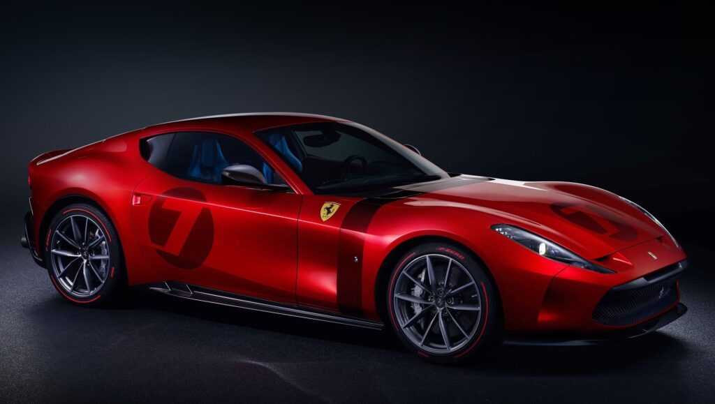 За основу взята Ferrari 812 Superfast, от которой безжалостные дизайнеры оставили только оптику, крышу да всю техническую начинку. Под капотом – 800-сильный атмосферный V12, а за торможение с 340 км/ч отвечает увесистая карбон-керамика с шестипоршневыми суппортами. Кузов решили делать не из углепластика, а «всего лишь» из алюминия. Ну и куда без особенного цвета: на этот раз колористы намешали миллион оттенков красного и получили «Rosso Magma».