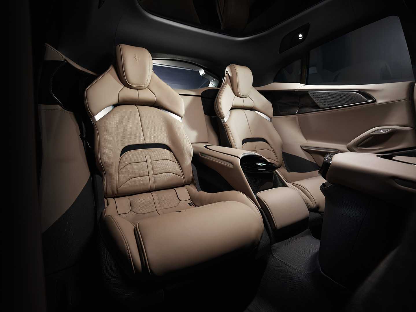 В салоне четыре отдельных кресла-ковша. Интересно, что, несмотря на форму кресел и элитарность Ferrari Purosangue, их можно сложить, чтобы перевести какие-то длинные предметы в багажнике.