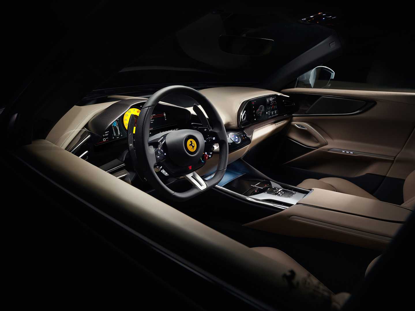 Другой момент — огроменные колёса, которые с относительно небольшими для них арками не сильно хороши для езды по жёсткому бездорожью. Спереди установлены 22-дюймовые 255/35 R22 J9.0, сзади — 23-дюймовые 315/30 R23 J11.0. По сути, перед нам просто крупный полноприводный автомобиль Ferrari. Его можно отнести к отдельной линейке, где раньше были только полноприводные шутингбрейки Ferrari FF и GTC4 Lusso. Или просто сказав, что это первый пятидверный автомобиль марки.