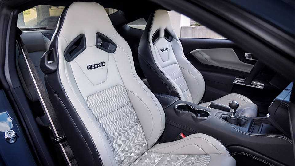 Options: Mach 1 Handling Package – Pilot Sport Cup 2 ultra-high-performance tires, 19 x 10.5″ fr/19 x 11″ rr wheels, revised chassis tuning, adjustable front strut mounts, performance front splitter, performance rear spoiler with Gurney flap, $3750; Recaro cloth sport bucket seats, $1650; red-painted brake calipers, $495; *rear seat delete, $250