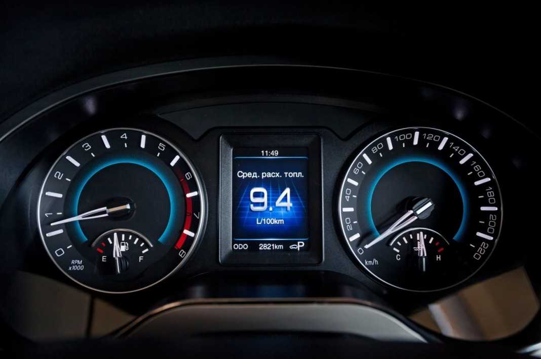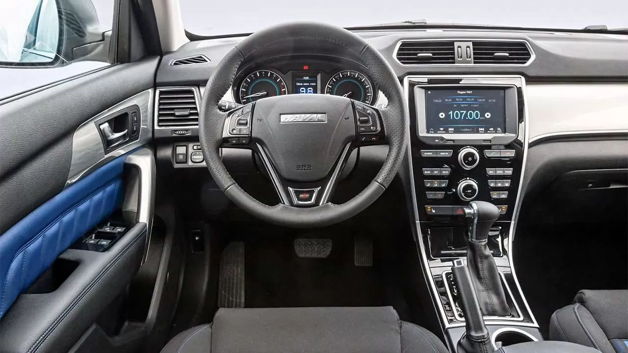 Водительское место оборудовано внушительным 3-спицевым рулевым колесом с большим количеством кнопок, за которым расположились приборная панель Хавейла Н2, состоящая из двух классических аналоговых циферблатов и маленького дисплея бортового компьютера, расположенного по центру.
