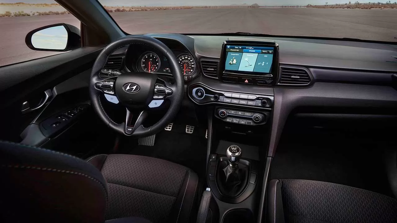 Внутреннее убранство Хендай Велостер радует глаз, всё отделано качественными материалами: передняя панель выполнена из мягкого и приятного пластика, а материал сидений — комбинация ткани и искусственной кожи. Передние кресла Велостера имеют ярко выраженную боковую поддержку. Сами сиденья первого ряда удобны и имеют достаточно широкие диапазоны регулировок. Задний диван рассчитан на двух пассажиров и имеет хороший запас пространства в ногах и по ширине, однако из-за формы крыши головы высоких пассажиров будут упираться в потолок. Кроме того, узкий дверной проем затрудняет доступ на второй ряд.