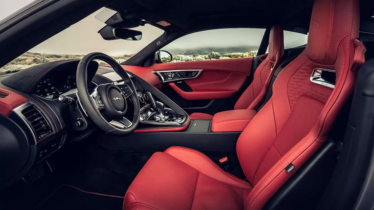 Архитектура салона осталась прежней, но оформление приблизилось к стилю минимализма. Сделано это стилем материалов, что смотрится прекрасно. В качестве обшивки F-Type теперь используется кожа Windsor и вставки из алькантары.