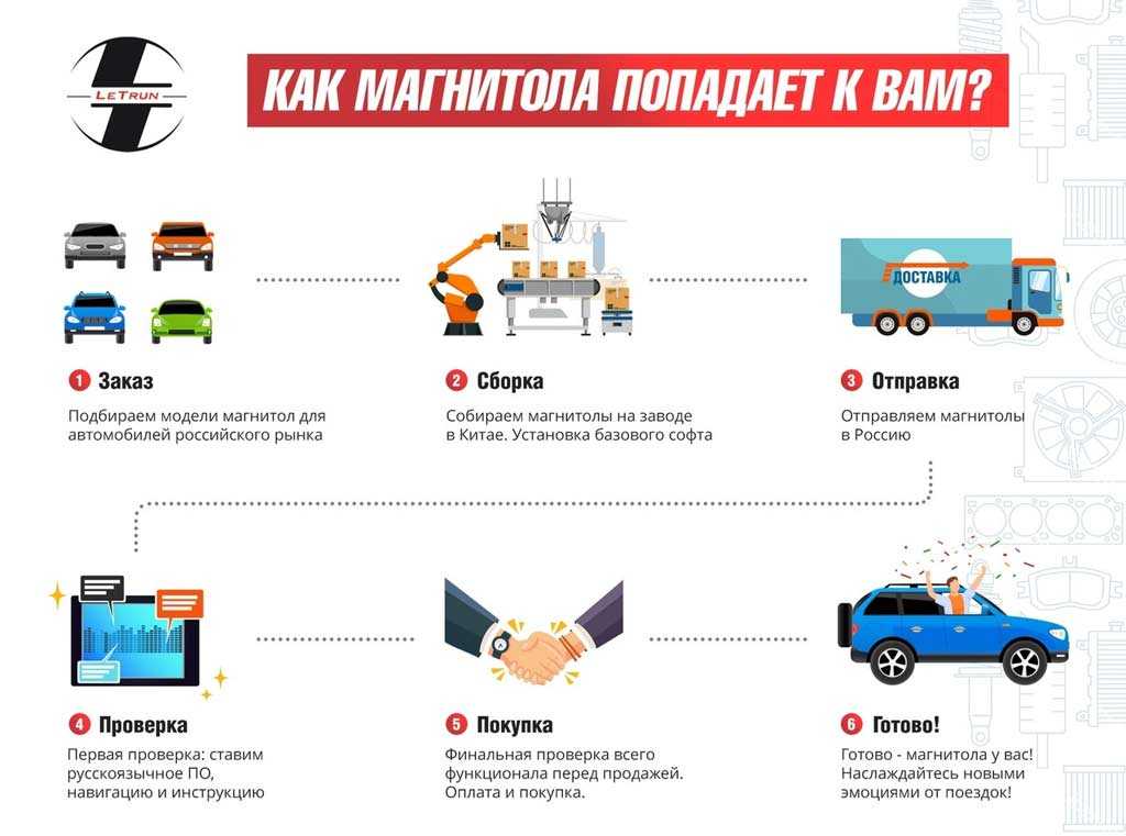 Letrun продает штатные магнитолы российского производства для разных моделей машин. На сайте есть подробная информация по каждой модели. В наличии есть устройства на базе Андроид и WinCE.