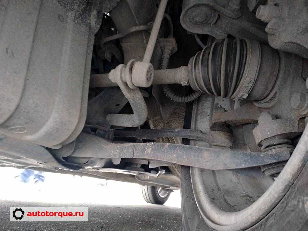 Автомобиль имеет высокую парусность ,и раскачку в вертикальной плоскости, от сюда и повышенные нагрузки на стабилизатор. Сами втулки стабилизатора, относительно крепко поддаются нагрузке и массового их износа не замечено. Что касается стоек, то их срок жизни увы не велик. Постукивание в стабилизаторе поперченной устойчивости, может наступить уже к пробегу в 15 тысяч километров и многие стараются устранить эту неисправность по гарантии