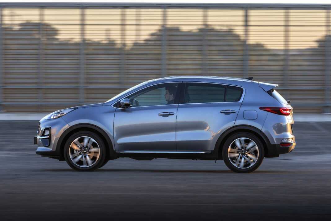 В профиль новинка выглядит как рядовой европейский кроссовер и чем-то примечательным похвастаться не может. По верхушке проходят хромированные рейлинги вплотную прилегая к кузову. Окна собраны в трапецию неправильной формы, разделены чёрными стойками и окаймлены серебристой вставкой. Стёкла достаточно крупные, поэтому с боковым обзором у КиаСпортажтакже проблем нет.