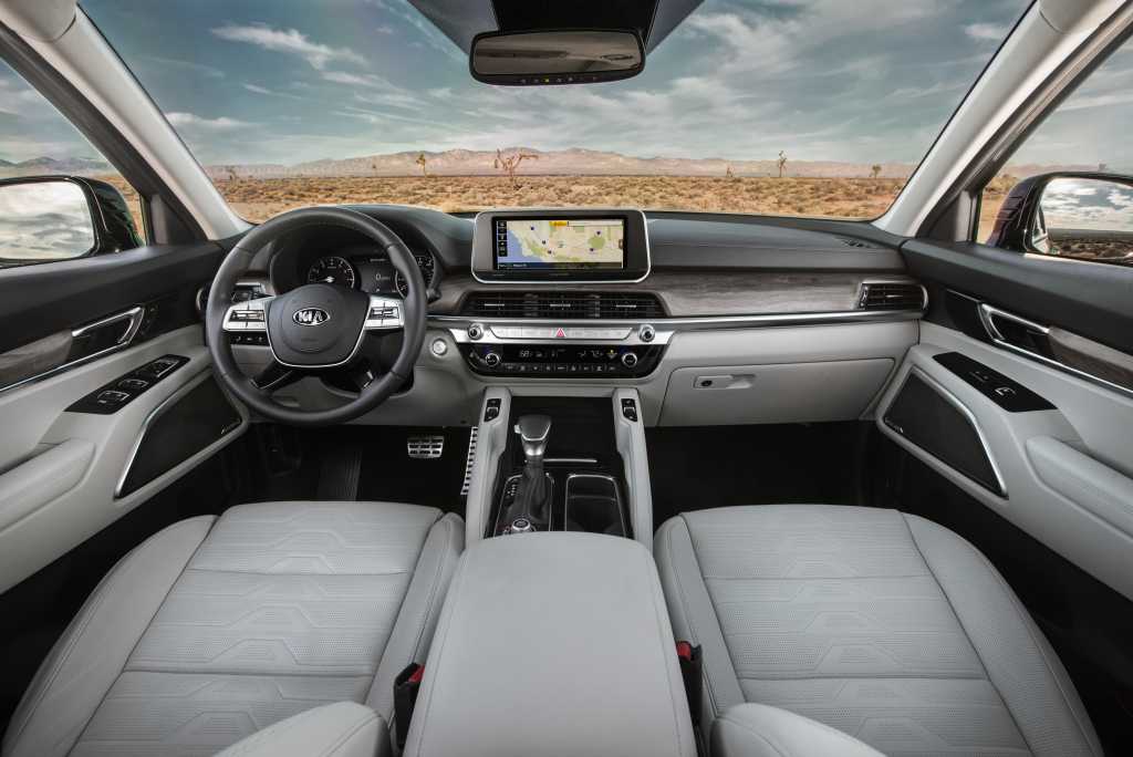 Новая стандартная система Highway Assist 1.5, или дополнительная версия 2.0 добавляет функцию автоматической смены полосы движения. При ее активации крошечный индикатор Telluride на дисплее обрамляется линиями, которые становятся зелеными, когда активируется функция самоцентрирования полосы движения. В целом, новые дисплеи придают салону нотку современности, которая в остальном не изменилась, за исключением некоторых измененных вентиляционных отверстий и появления портов USB-C, расположенных вместо обычных USB-портов на всех трех рядах сидений. Эти USB-порты расположены на спинках передних сидений, чтобы можно было легко заряжать, скажем, iPad, пока дети на заднем сиденье смотрят на них.