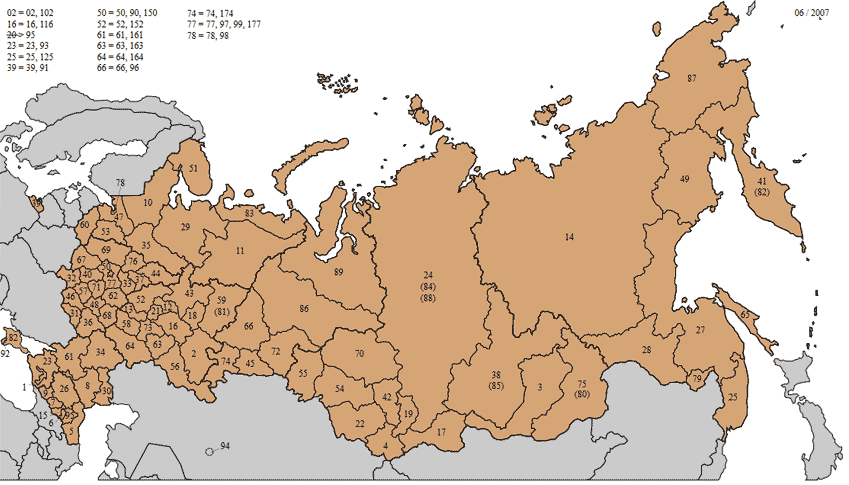При регистрации в текущем году автомобилю присваивают номер с кодом региона, который строго соответствует прописке автовладельца. Теперь автомобили ездят строго с кодами своего региона. По таблице (см. выше) можно определить регион автовладельца.