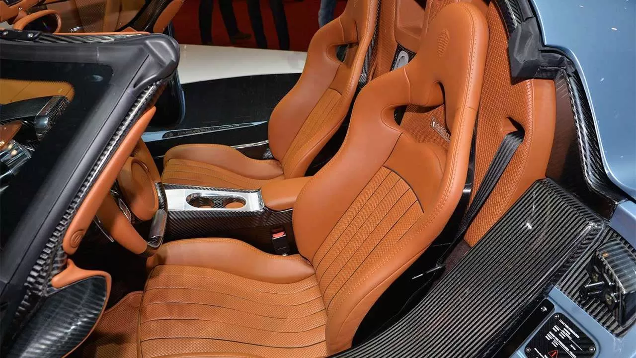 Так как это гиперкар, то внутренняя часть машины двухместная. По своей стилистике он больше склонен к минимализму. Это сделали для организации области водителя, чтобы он не отвлекался на посторонние факторы. В первую очередь машина предназначена для получения удовольствия от движения на большой скорости. Хотя все выглядит достаточно скромно, но применяются высококачественные материалы.