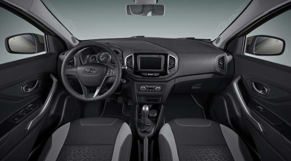 Дверные проемы обладают широким пространством и позволяют более подробнее присмотреться к интерьеру четырехместного кроссовера. Все сидения обладают четкими границами и выполнены из кожи. Панель, установленная впереди, оформляется стильными слоями, подсветкой дверей панелей светодиодами, что появилось впервые на Лада ХRay. Панель приборов выполнена в электронной оснастке и обладает цветным 7-ми дюймовым экраном, какой окружен уникальными дефлекторами системы вентилирования и который поддерживает сенсорный ввод.