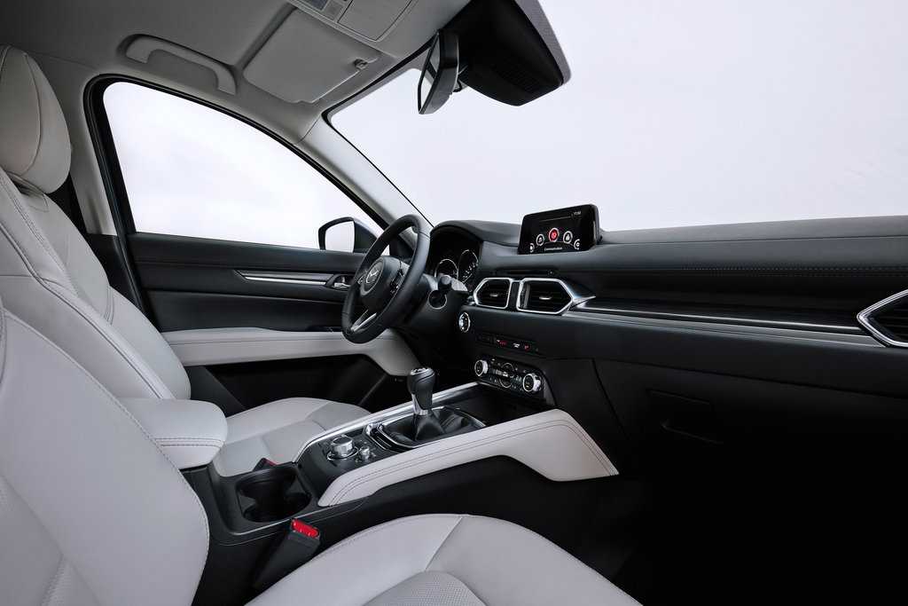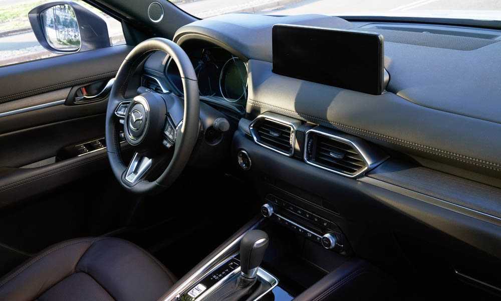 В салоне Mazda CX-5 2020 традиционно используются качественные материалы: приятная на ощупь нежная кожа, современный пластик, накладки из экокожи и ткани.