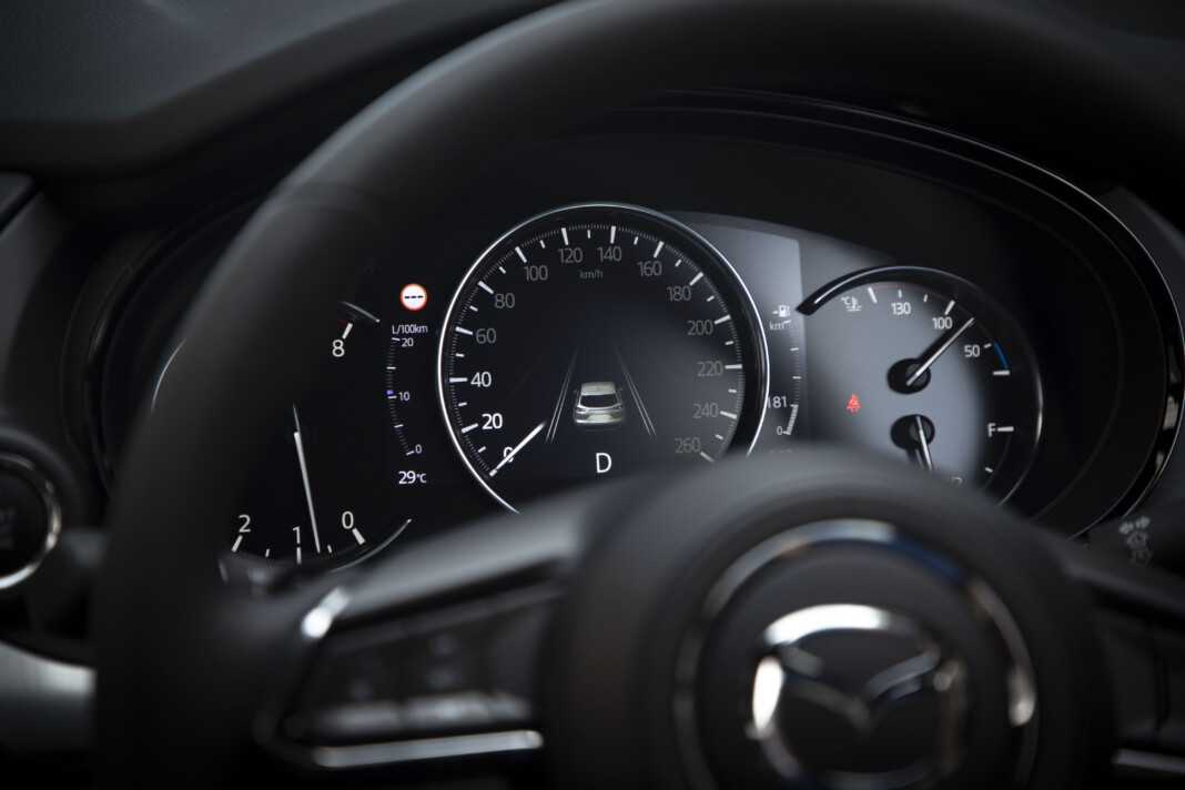 Автомобиль выполнен в фирменном стиле Мазда. Однако рестайлинг принес некоторые изменения, которые сделали внешний вид модели более уникальным. От дорестайлингового кроссовера эта версия отличается переработанной решеткой радиатора, более узкими фарами с дневными ходовыми огнями и хромированной вставкой, идущей по всей ширине бампера. Такая же вставка присутствует и на боковых частях модели. На корме можно заметить выхлопные трубы большего размера и узкие фонари. Нижнюю часть автомобиля украшают накладки из неокрашенного пластика. Они здесь в отличие от СХ-30 смотрятся к месту.