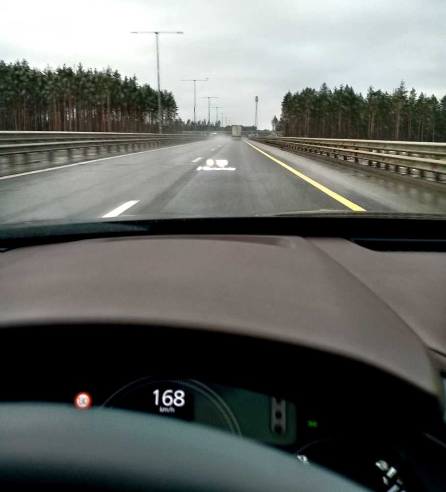 Платная магистраль, соединяющая две столицы, оставила двоякое впечатление. С одной стороны, видно, что ее убирают, с другой, столько песка и мелких камешков летит из-под колес обгоняемого транспорта — хоть святых выноси. У кого кузов окрашен в один слой лака, не завидую. Тучи брызг на дороге в миг накрывают зеркальную поверхность боковых «лопухов» и лобового стекла, однако усердие бескаркасных «дворников» с встроенными форсунками омывателя разделываются с безобразием на счет раз. Чуть труднее радару адаптивного круиза – он на грязной дороге быстро «мутнеет», оповещая водителя соответствующей надписью на панели приборов.