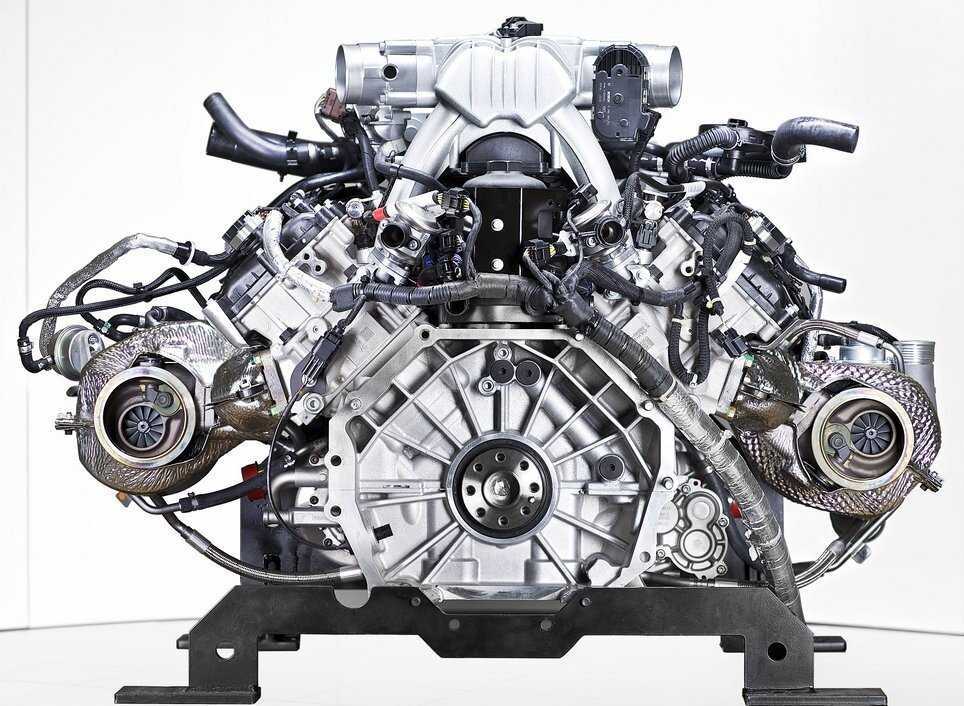 Модель оборудована двумя моторами, первый это бензиновый агрегат объемом в 3,8 литра, а второй мотор электрический с блоком аккумуляторов. Бензиновый двигатель – это V-образный 8-ми цилиндровый агрегат, оборудованный двумя турбинами.
