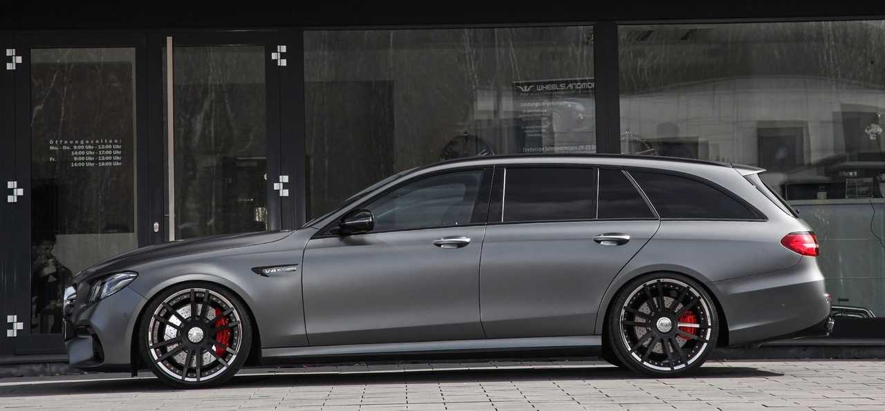 Внешность AMG e 63 S, казалось бы, полностью скопирована с Е класса, но все к чему прикоснулись инженеры становится чем-то невероятным. Передние дисковые тормоза по длине более 400 мм. Соответственно колеса менее 20 дм в диаметре AMG e63 S просто не подойдут. Низкопрофильная резина и матовые литые диски придают агрессивности во внешности.