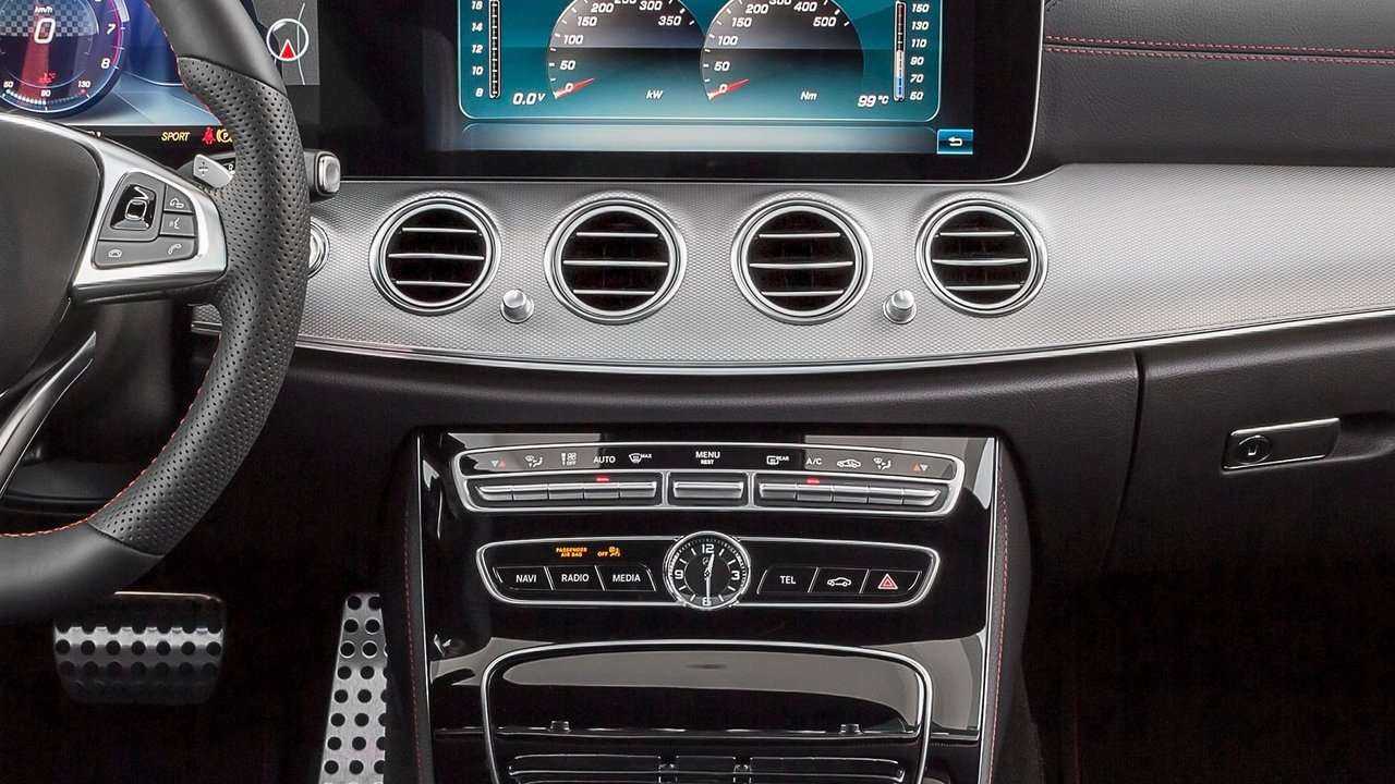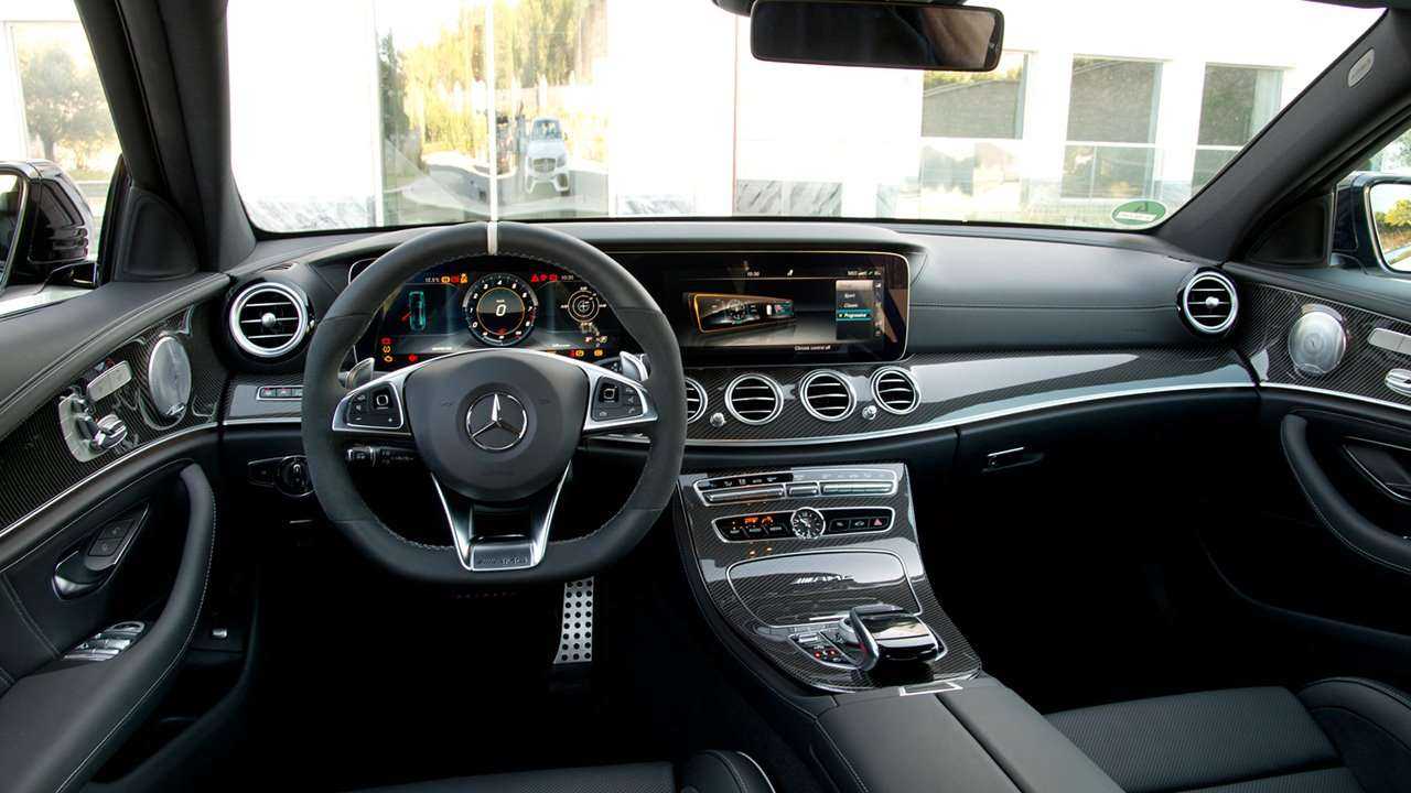 Аналоговая панель приборов Mercedes benz отсутствует, вместо этого огромный жидкокристаллический экран, занимающий почти всю торпеду. Сиденья Mercedes benz E63 в форме ковшей для лучшей поддержки водителя и пассажира при движении на большой скорости. Управлять настройками кресел можно с двери водителя и пассажира. Сиденья выдвигаются вперед, назад, регулируются по высоте и наклону спинки. Обдув, подогрев и массаж сидений сделают поездки на дальние расстояния более комфортными.