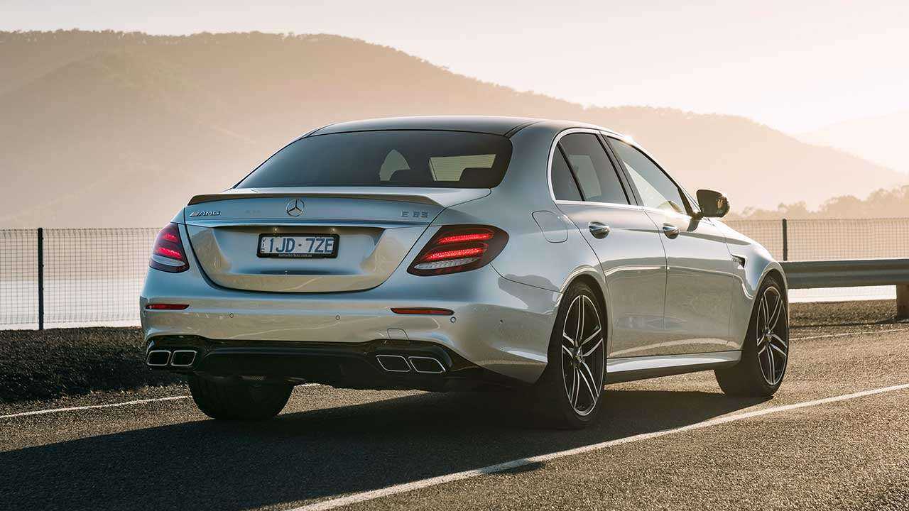 Визуально ширину задней части кузова придают распложенные по краям воздуховыпускные отверстия, чёрная решётка и пара двойных хромированных патрубков спортивной выхлопной системы AMG. Чёрный диффузор с чётко выраженными «жабрами» придаёт автомобилю E 63 AMG шарм, присущий спортивным, гоночным авто.