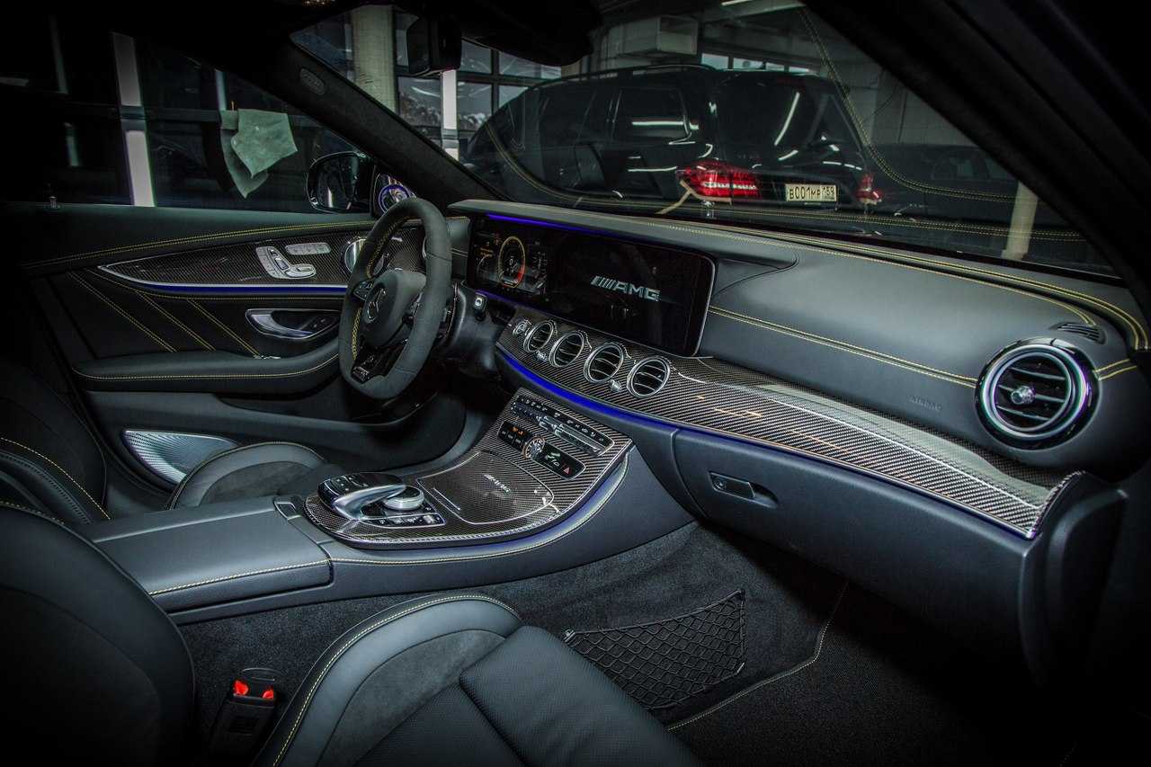 Самый простой вариант отделки Мерседес Е63 2018 обойдется покупателю в 6.9 миллиона. Здесь будут присутствовать: стабилизация, антиблокировочная система, контроль слепых зон, контроль за состоянием водителя, несколько подушек, климат-контроль на первую зону, помощники для парковки спереди и сзади, круиз-контроль, датчики света и дождя, отличная мультимедиа и противоугонная система, а также куча прочего оборудования. Цена топа находится на уровне в 9.7 миллиона. Здесь покупателя ждет более мощный мотор, увеличение максималки до 300 километров в час, адаптивный круиз, бесключевой доступ, дверь багажника на электроприводе, предпусковой отопитель, автоматическая парковка и камера кругового обзора.