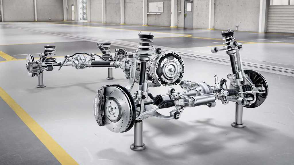 Над шасси нового Гелендвагена работали специалисты подразделения Mercedes-AMG. Они полностью пересмотрели старую конструкцию, в результате чего внедорожник обзавелся передней независимой двухрычажкой, крепящейся непосредственно в раме (раньше использовался подрамник). Сзади же на автомобиль установили неразрезной мост, дополненный четырьмя рычагами и тягой Панара.