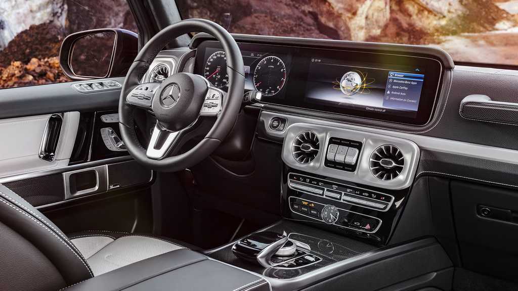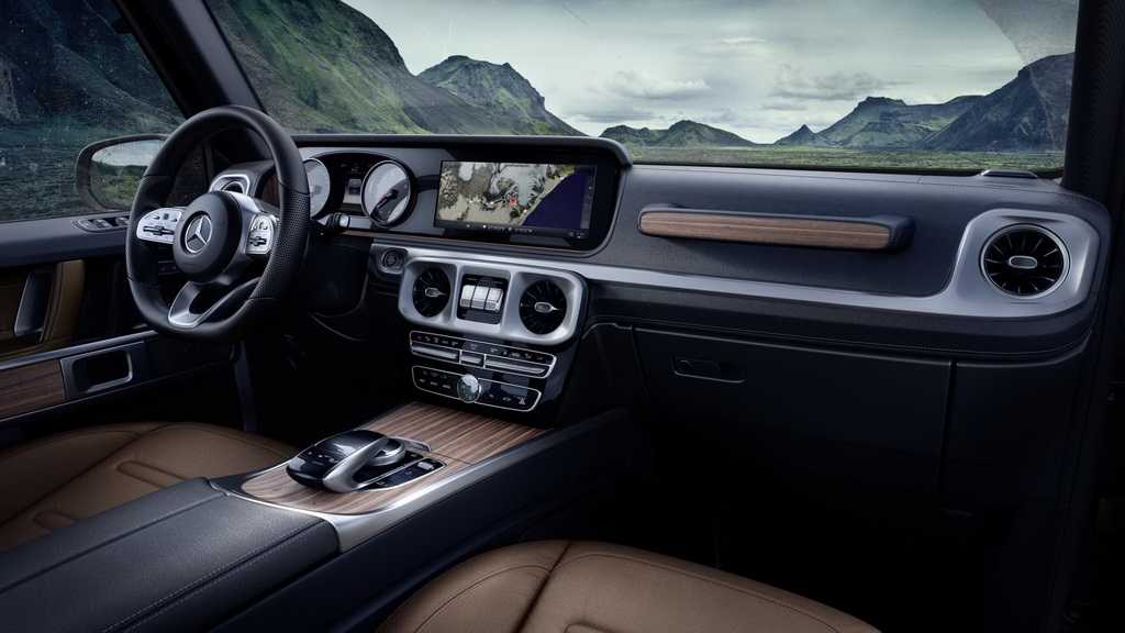 Топовые комплектации нового Mercedes G-Class порадуют невиданным ранее обилием доступного оборудования. Помимо тандема 12.3-дюймовых экранов в список оснащения входят несколько вариантов отделки с применением высококачественных материалов (кожа, алькантара, дерево, алюминий), электрифицированные по полной программе передние кресла Active Multicontour Seat (подогрев, массаж, вентиляция, настраиваемая боковая поддержка), трехзонный климат-контроль, беспроводная зарядка смартфонов, премиальная акустика Burmester с 16-ю колонками.