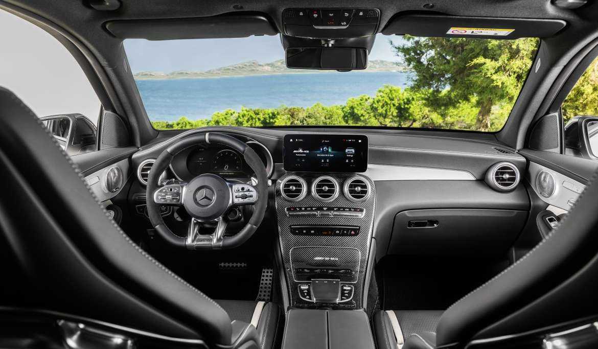 Внутри обновленные GLC 63 и GLC 63 Coupe оформлены в характерном для AMG-моделей гоночном стиле, в отделке салонов машин применяются натуральная кожа и алькантара. Автомобили получили фирменный мультимедийный комплекс MBUX, новый руль AMG-дизайна, в списке электронных «ассистентов» водителя появилась система помощи при маневрировании с прицепом (Trailer Manoeuvring Assist).